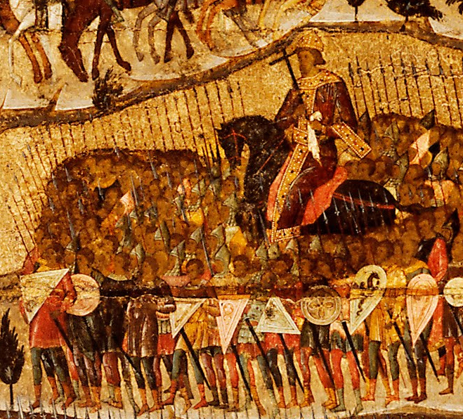 5. Fig. 5. Detail from the icon of the “Blessed Host of the Heavenly King” (“Church Militant”) / Деталь иконы «Благословенно вoинство Небeсного Царя» («Церковь воинствующая»). Wikimedia. | |