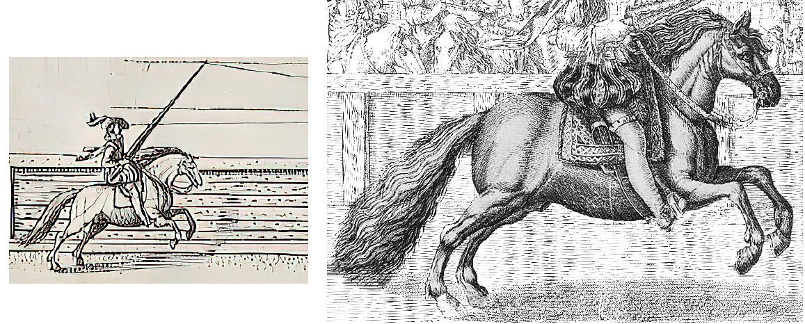 10. Fig. 10. Engravings showing galloping horses in the Pluvinel book, ills. 38, 43 / Скачующие лошади в гравюрах книги Плювинеля, илл. 38 и 43. | |