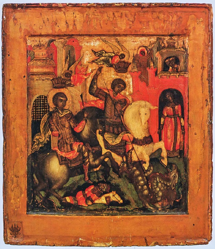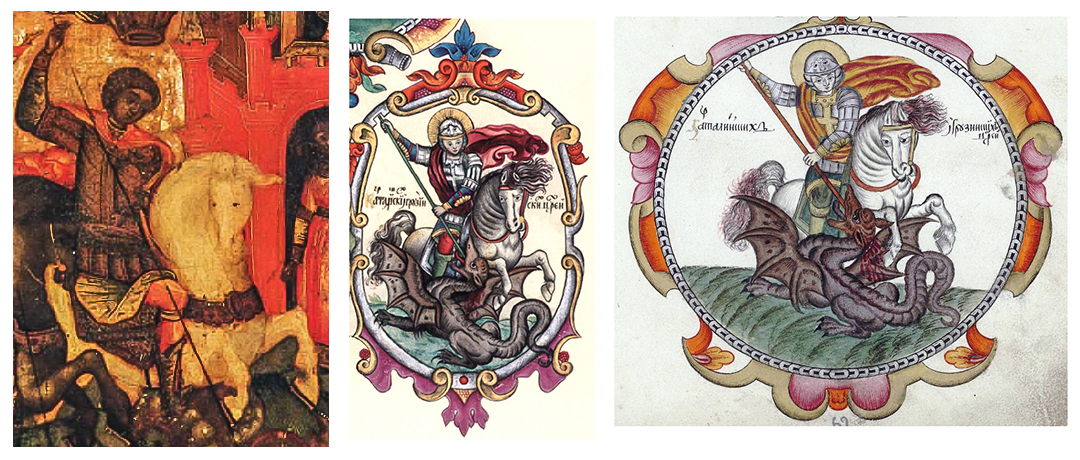 12. Fig. 12. Images of St. George from the Tituliarnik and from the icon painted by Nikita Pavlovets / Изображения св. Георгия в «Титулярнике» и из иконы, написанной Н. Павловцем. | |