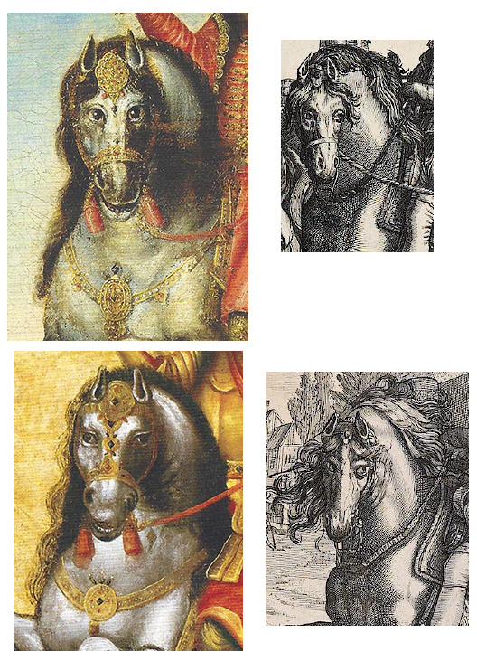 16. Fig. 16. Details of the horse protomes in the Russian portraits and in the Pluvinel engravings (ills.15, 26) / Детали протом лошадей в русских портретах и в гравюрах Плювинеля (илл. 15, 26). | |